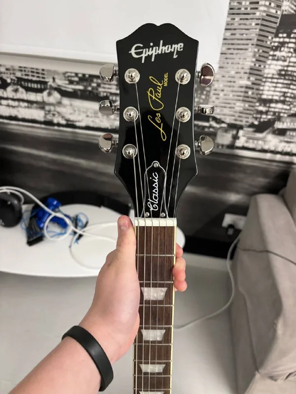 Epiphone Les Paul Classic Ebony, куплена в марте 2024 за €589. Гитара обладает исключительным звуком с звукоснимателями Alnico Classic PRO™, элегантной черной отделкой и винтажным дизайном. В отличном состоянии, с незначительными мелкими царапинами от легкого использования. Идеальный выбор для тех, кто ищет классический звук и ощущения от Les Paul по отличной цене.