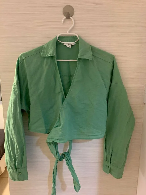 ◻️Рубашка зеленая на запах завязки, размер S. 💶10€