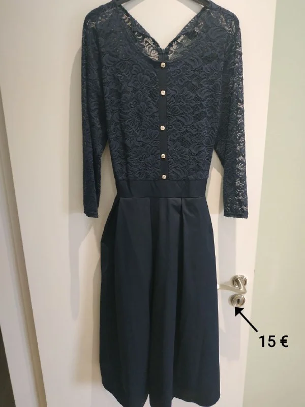 Платье темно синее, верх кружево, низ под атлас. 15 евро. Никосия
