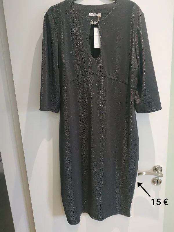 Нарядное платье. Брошь пришита. Верх толстый трикотаж, низ под атлас. 15 евро
