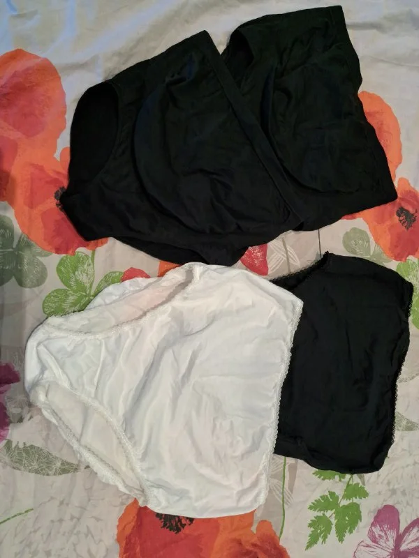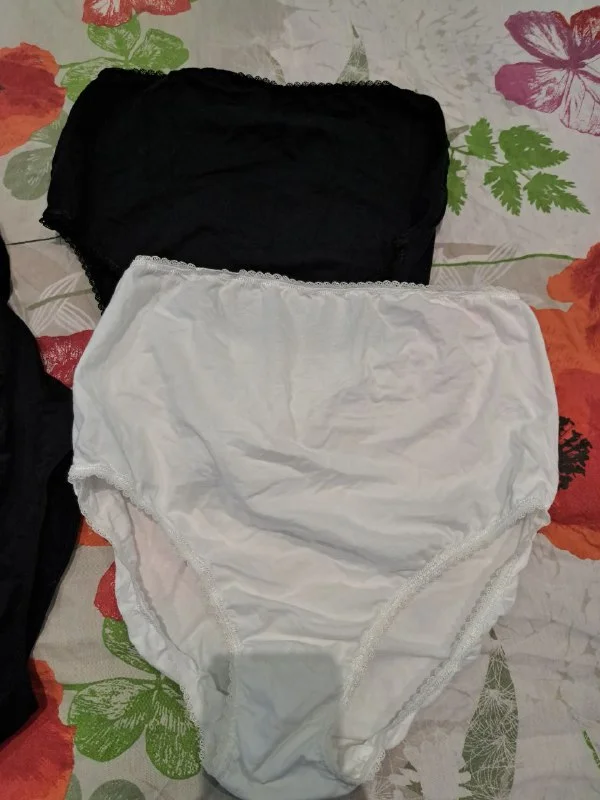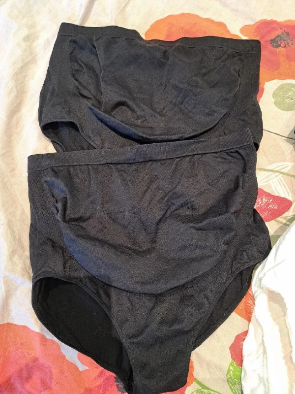 Высокие трусики для беременных, на большой живот. 2 пары, черные - синтетика, черно-белые - хлопок, из Mothercare, в новом состоянии, только постираны. Размер XL.
