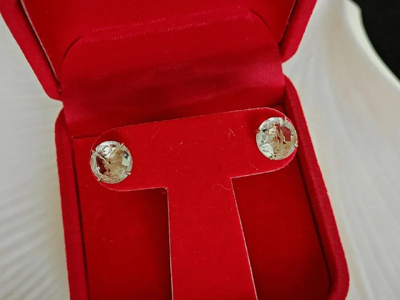 Золотые серьги с празиолитом 8 мм. Крепкий замок. 90 евро