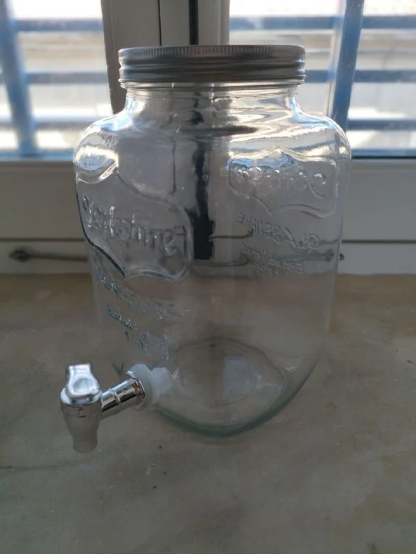 1. стеклянная банка с краном, 4 литра, 3 евро