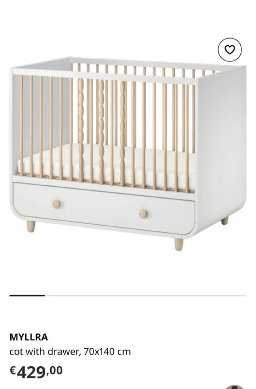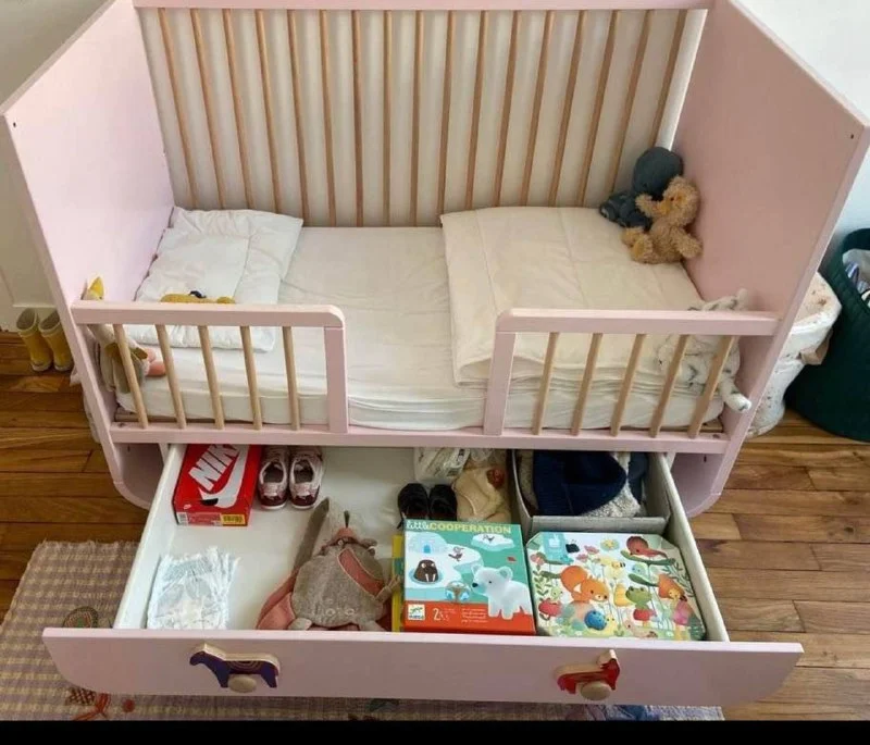 Детская кроватка MYLLRA с ящиком, розовая, 70x140 см. Имеет регулируемое дно.