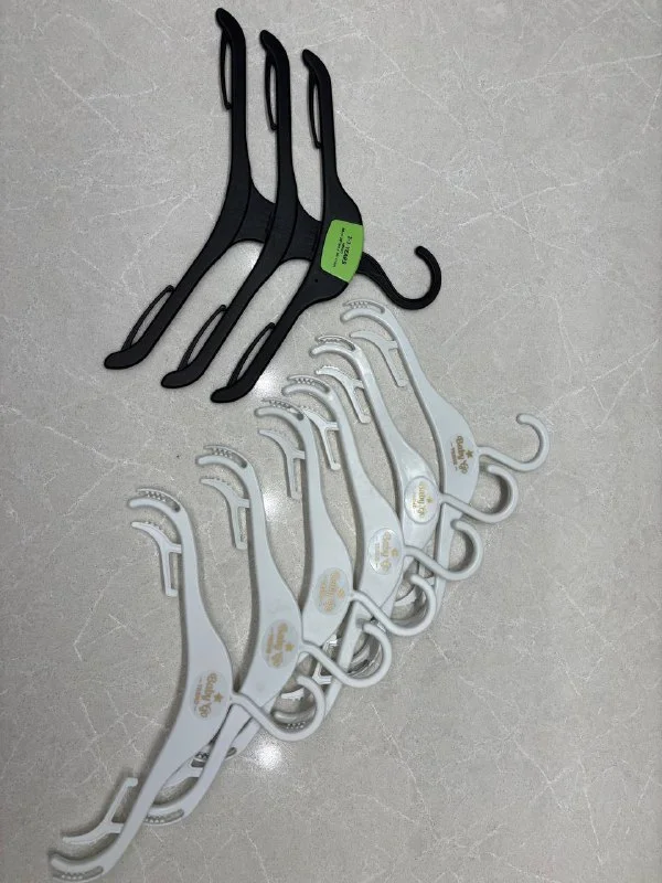 1) Детские вешалки пластиковые. 6 штук обычных и 1 штука тройная