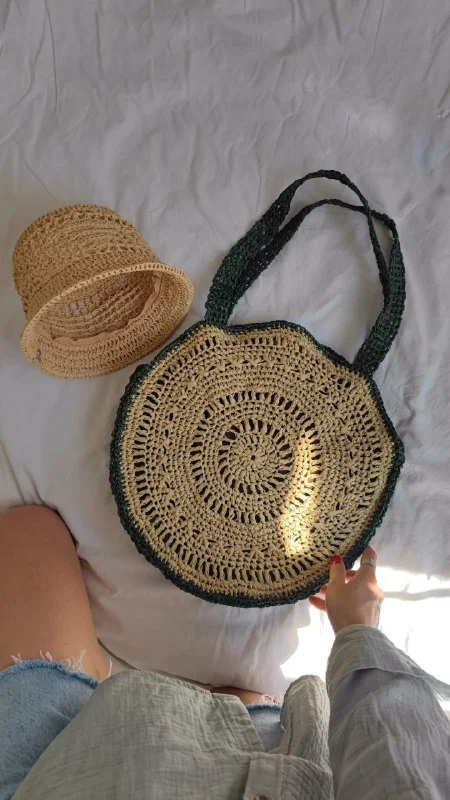 В наличии сумка из рафии (переработанные пальмовые листья).