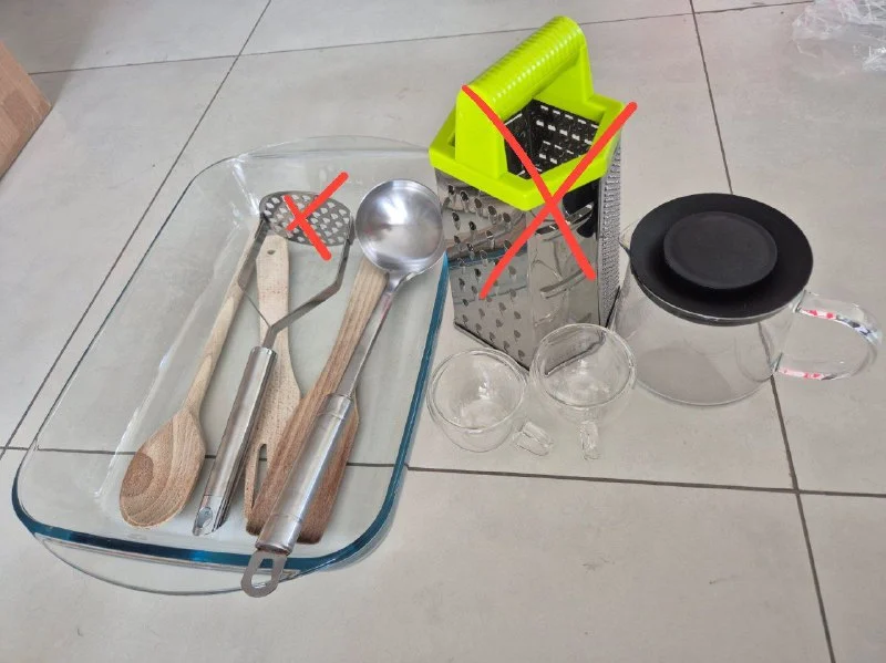 На фото (форма для запекания, заварочный чайник икеа, мини кружечки (их всего 4шт), лопатки) - все вместе 15€