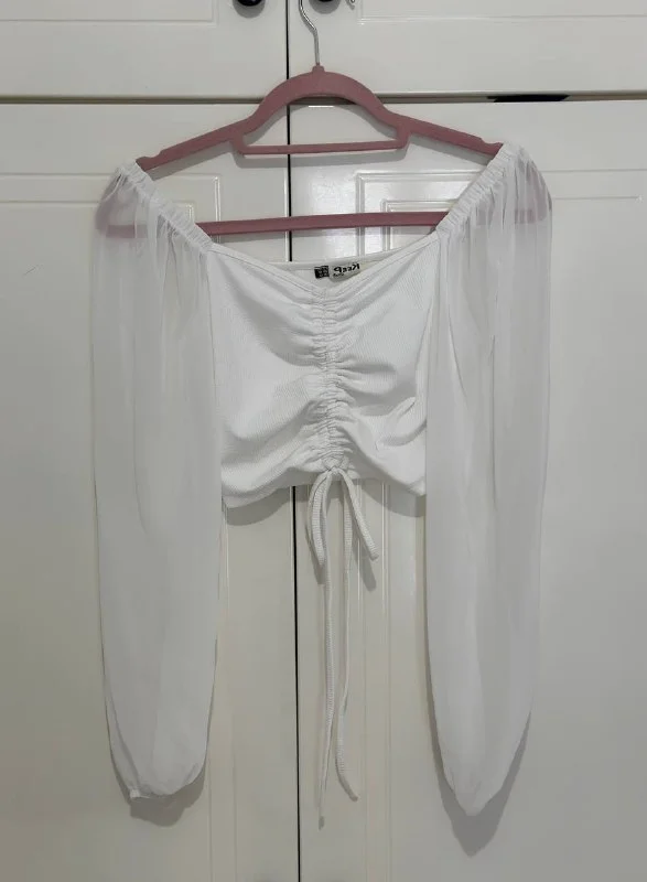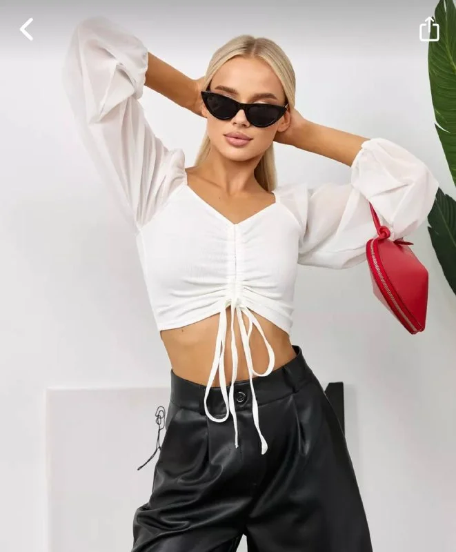 Кроп-топ летний с длинными обьемными рукавами облегающий