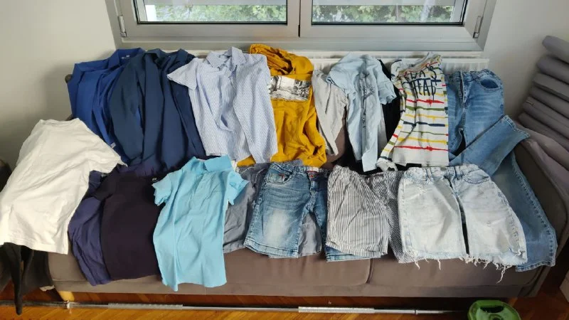 Пакет вещей для мальчика ростом 134-140. Рубашки и джинсы в идеальном состоянии. 15 евро за всё. Строволос