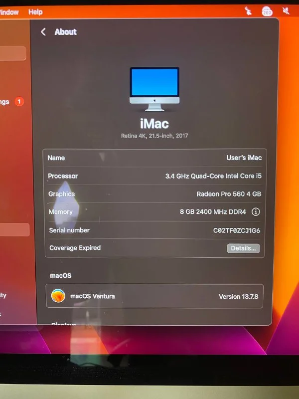 Display: 21.5-inch Retina 4K