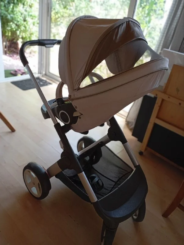 Суперудобная "STOKKE". База + 3 элемента (люлька основная, люлька-автокресло, люлька средняя после 6 мес) Для мам: комфортная коляска светлого цвета, идеально подходит для жаркого кипрского климата. Чехлы и все элементы легко снимаются и стираются в машинке. В комплекте идут тëплый чехол, антикомариная сетка, дождевик и подстаканник. Для пап: поменяны колëсные подшипники (8 штук). Коляска катится легко и приятно.