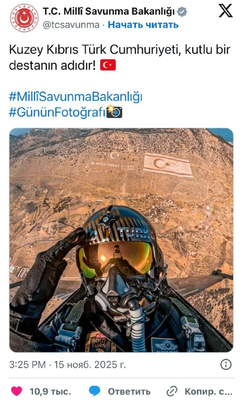🔊 Турецкие пилоты опубликовали селфи над Пентадактилосом: новая провокация к 42-й годовщине провозглашения псевдогосударства
