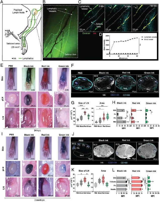 Учёные проследили путь татуировочных чернил от кожи до лимфоузлов, оценили воспаление и ответ на разные виды вакцин — от COVID-19 до гриппа.