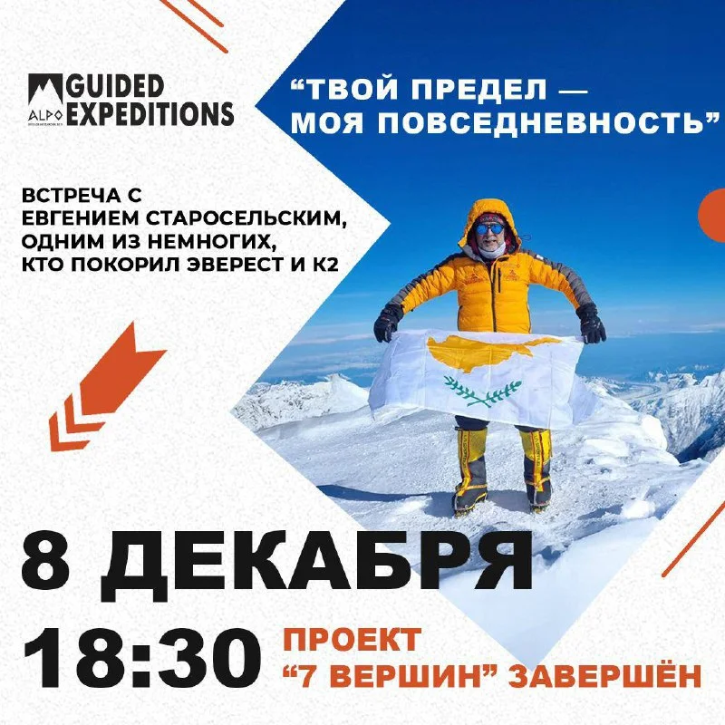 ❗️Не упустите возможность встретиться с одним из самых опытных альпинистов нашего времени.