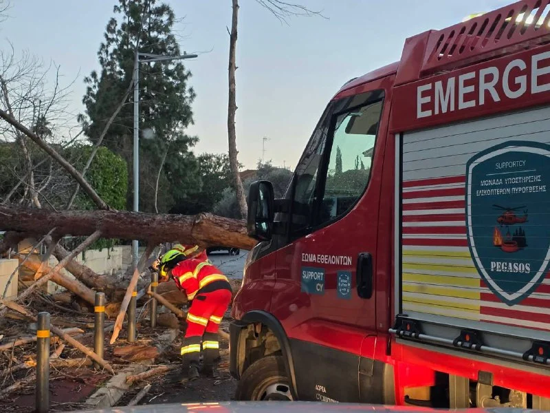 Вчера из-за сильных порывов ветра в Никосии произошли падения деревьев и ряд других инцидентов. Для поддержки Пожарной службы Кипра были задействованы спецтехника, оборудование и волонтёры.