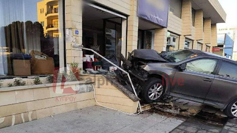 🔊ДТП в Энгоми: автомобиль влетел в ступеньки магазина