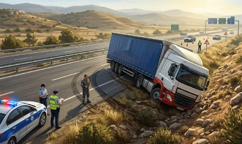 🔊**На трассе Лимассол — Никосия грузовик съехал на обочину: водитель не справился с управлением