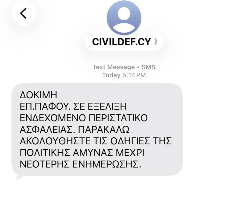 Сегодня, 6 марта, на Кипре проводится очередная проверка системы оповещения населения. Служба гражданской обороны Cyprus Civil Defence отправит на мобильные телефоны жителей тестовые SMS-уведомления, которые будут приходить поэтапно в разных регионах острова.