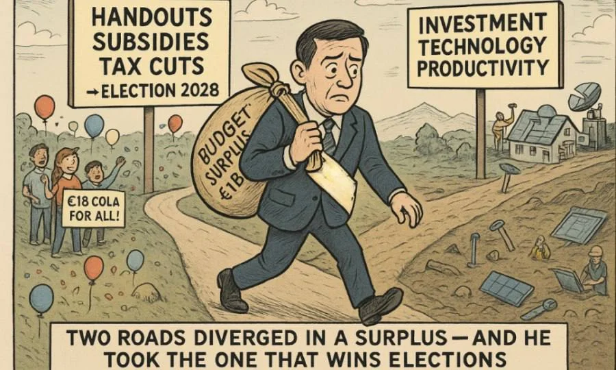 The government faces two options. It appears set on the easy one: broad handouts, subsidies and tax breaks. COLA lacks a permanent deal for 12 years. COLA for all raises hope for workers and concern for employers. Spending year after year from €1bn surpluses risks long-term damage if coverage expands without reform. Better use: invest in productivity - technology, energy, defence and critical infrastructure. Past Recovery funds were spent on old projects with little effect. Time is short before the next election.