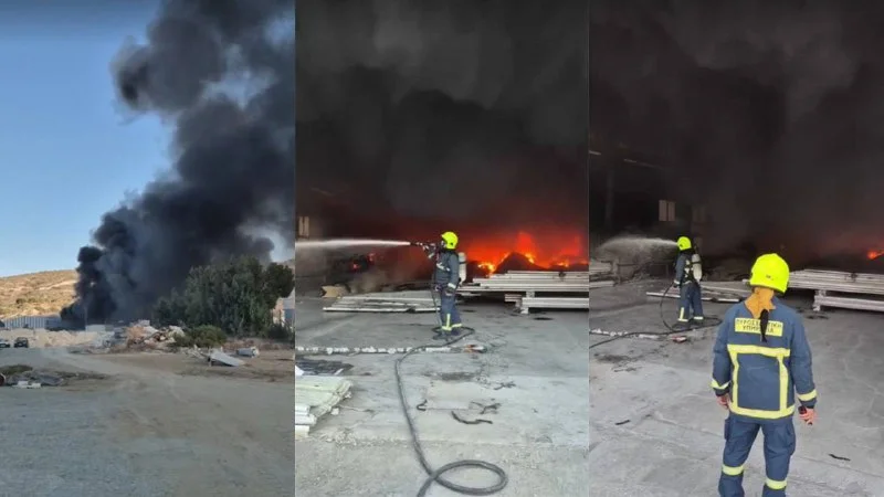 Firefighting continues at a factory in Moni. Fire Service spokesperson Andreas Kettis says adjacent factories were protected. Crews operate mainly inside the plant where thick layers of polyurethane panels burn. Teams use water and foam. The fire is contained to the factory but extinguishing will be prolonged due to the materials. No further risk of spread at present. Causes will be investigated after full extinction, expected tomorrow. Police warn of very low visibility on the old road by Moni; dense black smoke seen from the Nicosia-Limassol motorway.
