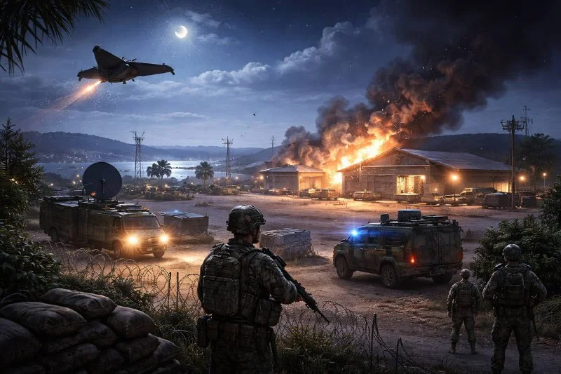 Members of the GEOINT team of Faytuks Network report visible smoke roughly one kilometre east of the Dhekelia Sovereign Base Area in Cyprus. The observation follows drone alerts and local evacuations in the vicinity. Video footage circulated by the team shows a smoke plume and indicates the approximate location. Security teams and emergency responders are on site; movements near the perimeter remain restricted while investigators monitor developments. Further updates expected.