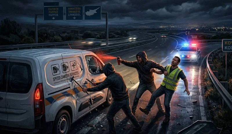 On the night of March 12, three unidentified individuals attacked a 36-year-old employee of a company responsible for maintaining mobile speed-control cameras near the Kouklia exit on the PaphosโLimassol Highway.