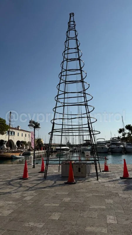 🎄 В районе Limassol Marina начали установку рождественской ели. Монтаж конструкций проходит на центральной площади.