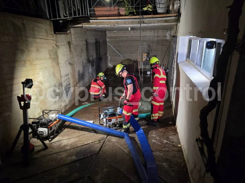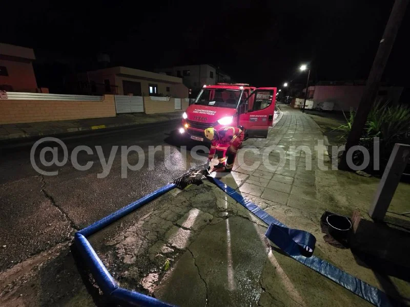 Пожарная служба получила 75 обращений из Лакатамии, Антуполи, Строволоса и Энгоми, где вода заполнила подвалы, автомобили застревали на дорогах, фиксировались искры на линиях электропередачи и падения деревьев.