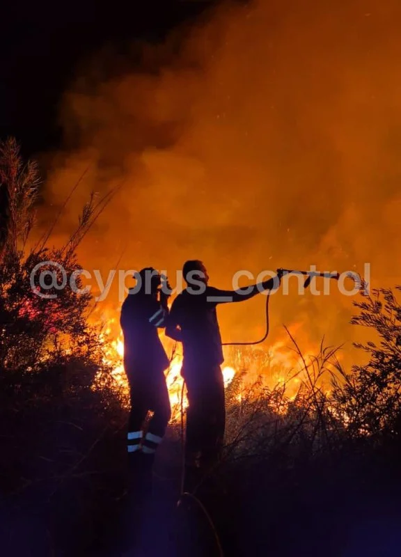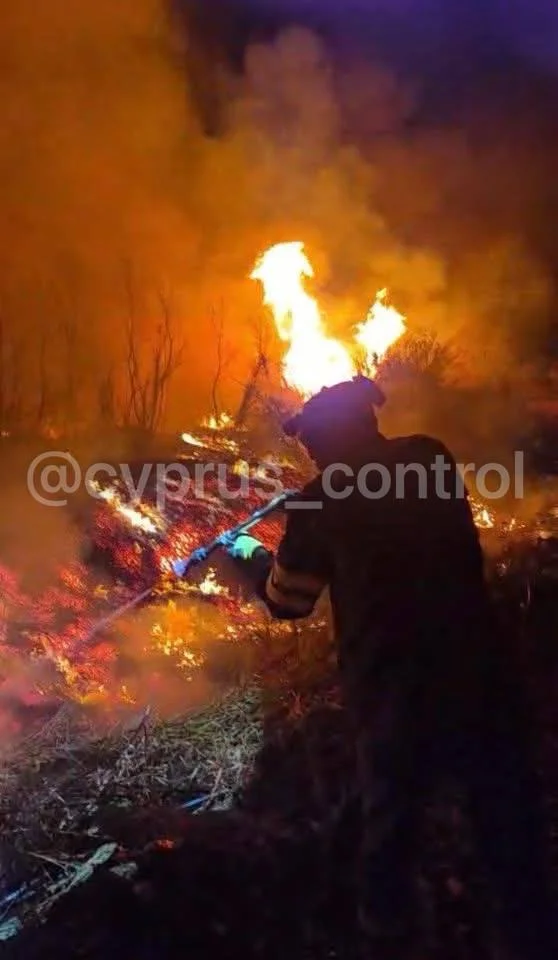Пожарные, сотрудники Лесного департамента, местные службы и группа «Атлас» успели остановить пламя в последний момент. Сгорели столбы EAC, повреждено около 2 гектаров растительности. Пожар удалось полностью потушить к утру. @cyprus_control