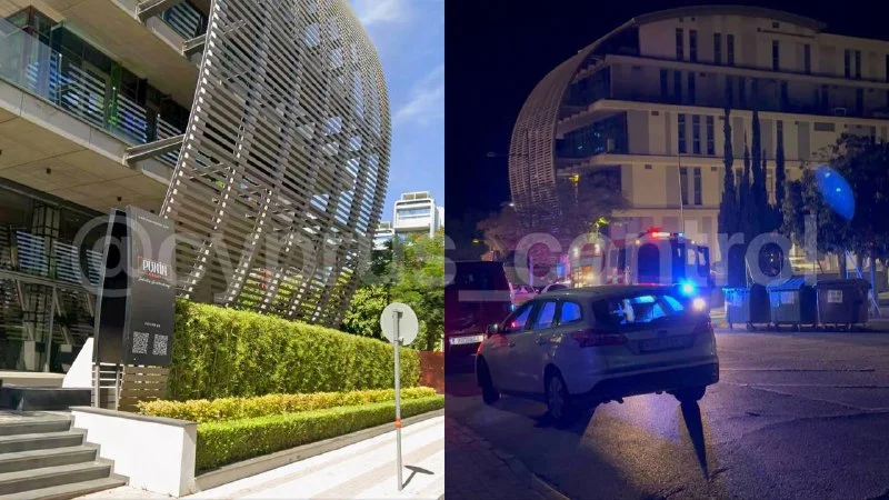 В здании на проспекте Спироса Киприану почувствовали сильный химический запах, после чего пожарная служба подняла тревогу и вывела людей на улицу.