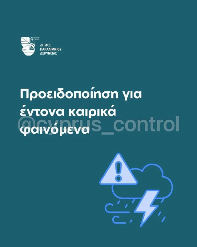 ⚠️ Муниципалитеты Айя-Напы, Паралимни и Деринии просят ограничить передвижения из-за оранжевого уровня погодной опасности. Власти призывают жителей и гостей избегать поездок, быть особенно осторожными в местах со скоплением воды и учитывать снижение видимости. Муниципальные службы находятся в полной готовности. @cyprus_control