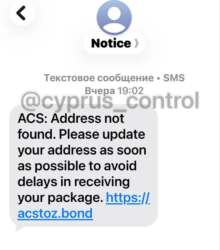 Такие SMS не связаны с курьерской службой. Специалисты предупреждают не открывать ссылку и удалить сообщение. @cyprus_control