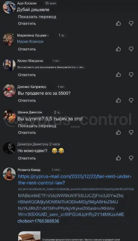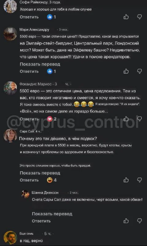 В комментариях звучали обвинения в спекуляции и призывы к государству усилить контроль за рынком аренды. Ситуация вновь обострила общественную дискуссию о доступности жилья и росте арендных ставок на фоне ограниченного предложения. @cyprus_control