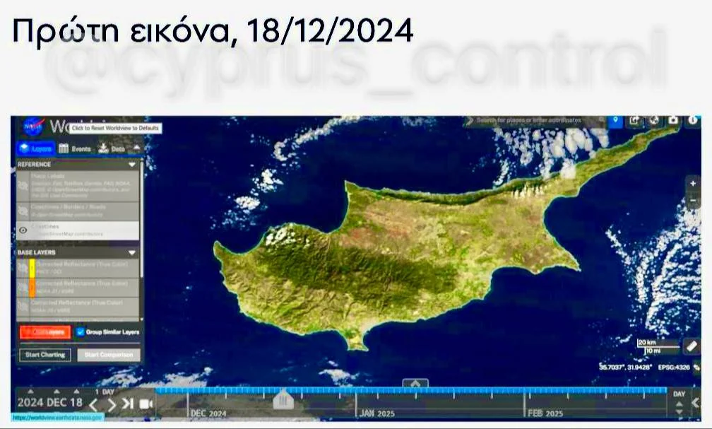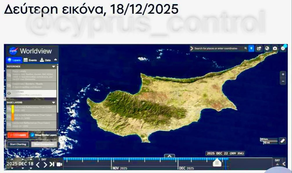 Разница между снимками подчёркивает масштабы многолетней засухи и её влияние на экосистему Республики Кипр. @cyprus_control