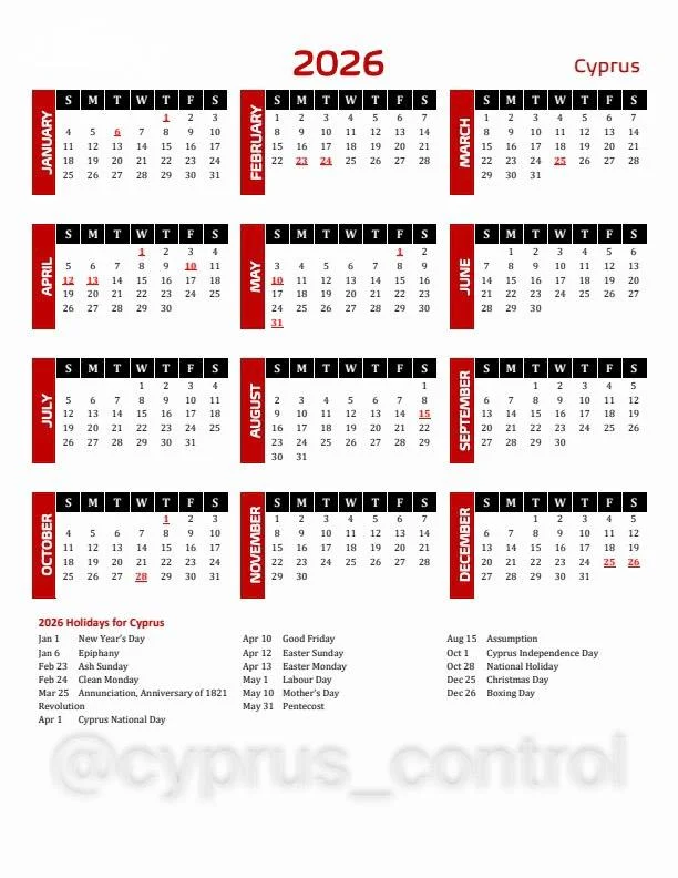 📅 В Республике Кипр опубликовали календарь государственных и религиозных праздников на 2026 год.