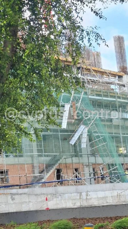 🚧 В Никосии днём обрушилась часть строительных лесов рядом с центральной улицей Стазину. Инцидент произошёл у недостроенного многоэтажного здания, где внешняя конструкция упала на тротуар и прилегающую территорию стройки, вызвав обеспокоенность прохожих. По предварительной информации, пострадавших нет, причины обрушения уточняются. @cyprus_control