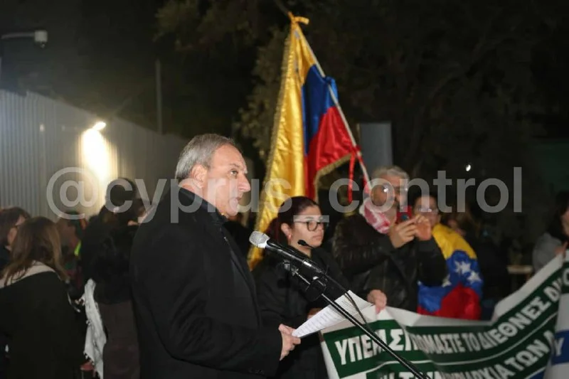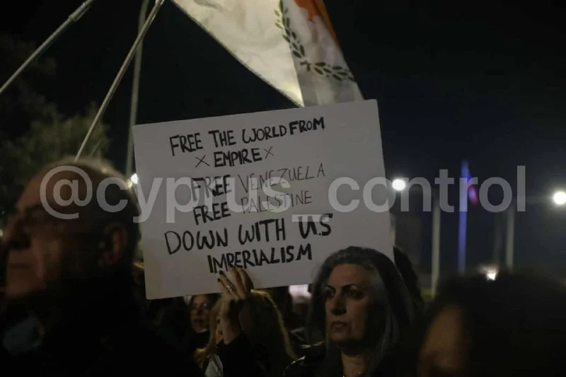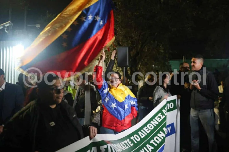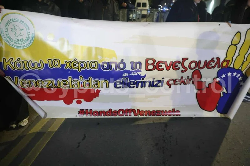 🪧 У посольства США в Никосии прошла акция солидарности с Венесуэлой. Протест организовал Всекипрский совет мира при участии АКЕЛ, Коммунистической инициативы Кипра и ПЕО. Участники выступили против вмешательства США во внутренние дела Венесуэлы, скандировали лозунги в защиту международного права и суверенитета государств, а также выражали поддержку венесуэльскому народу. Полиция обеспечивала усиленные меры безопасности, серьёзных инцидентов зафиксировано не было. @cyprus_control