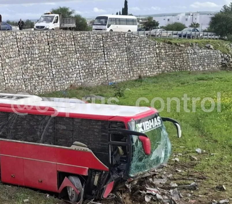 🚌 Автобус упал с высоты 6 метров на трассе Никосия – Фамагуста. Водитель потерял управление, транспорт сначала врезался в разделительный островок, затем в каменную стену и после этого упал с высоты около 6 метров в поле. В результате аварии пострадали 2 пассажира. Обстоятельства происшествия уточняются. @cyprus_control