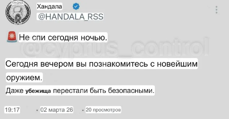 Подлинность и источник публикации официально не подтверждены, конкретные цели или детали не раскрываются. @cyprus_control