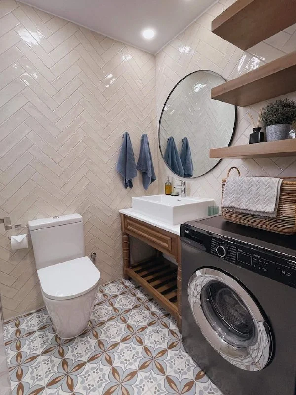 Просторная спальня с панельным изголовьем, кухня открытого типа с барной стойкой, уютная гостиная и современная ванная с отделкой под камень. Интерьер в тёплых природных тонах, много света и натуральных материалов.