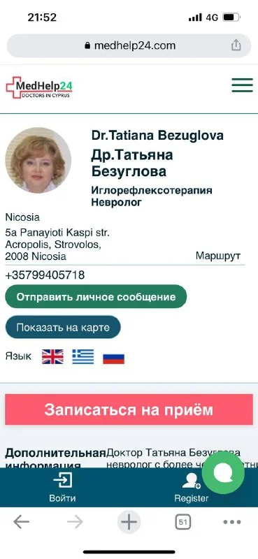 Подскажите, пожалуйста, хорошего русскоговорящего невролога в Ларнаке