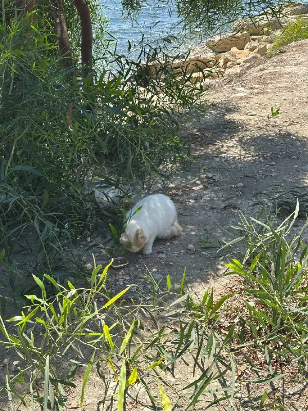 Всем здравствуйте! Котик возле моря. Он сидит под деревом один. Гладить себя не дает, но охотно выбегает, поскольку голодный. Жалко его. Дали еды и воды. Но ему одному там очень тяжко. Поблизости нет людных мест. Если у кого то есть возможность помочь, забрать или хотя бы время от времени его навещать, кормить, поить-помогите пожалуйста