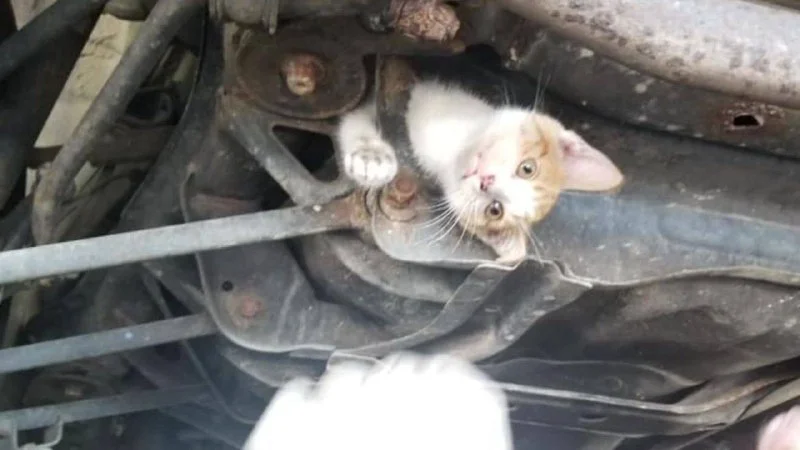 В Лимасоле котёнок забежал под стоявший на перекрёстке автомобиль и скрылся под ним, застряв. Для его извлечения автомобиль потребовалось эвакуировать и частично разобрать.