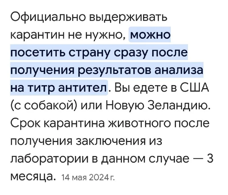Я для себя пытаюсь понять, т. к. оформляю животных. Не надо ожидать три месяца после сдачи на титры. Либо если нет титров и человек летит, то тогда 3ри месяца карантина