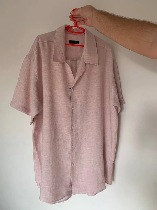 В наличии три рубашки в трех разных цветах: голубой, розовый и бежевый.