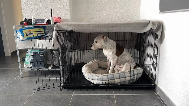 Продам черную, металлическую, разборную клетку для крупных собак в хорошем состоянии